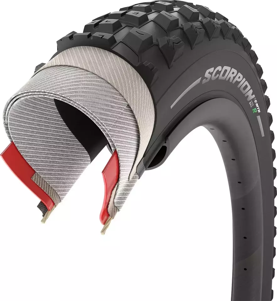 Neumático con un dibujo especial de la banda de rodadura diseñado para brindar tracción y agarre de frenado: el neumático trasero perfecto para senderos. Dibujo de la banda de rodadura de perfil medio para una conducción rápida y segura en una variedad de terrenos. La Scorpion™ E-MTB M con tecnologías HyperWALL y SmartGRIP+ es la mejor opción para andar en senderos donde el terreno puede variar pero la velocidad sigue siendo el factor clave"